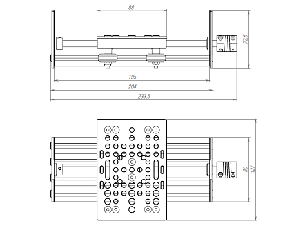 Комплект линейного привода подойдет для перемещения объекта по прямой линии. Используется винтовая передача трапецеидального винта. Линейный привод обычно используется в 3D принтерах и ЧПУ. Рабочий ход пластины 45 мм. Двигатель в комплект не входит.
