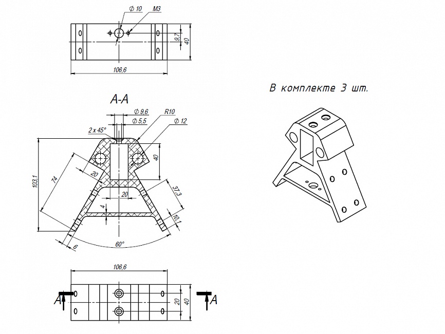 Набор креплений для дельта корпуса состоит из 6 алюминиевых уголков под профиль 20-й серии и части крепления под натяжной ролик, используется для конструирования каркаса дельта 3D-принтера.