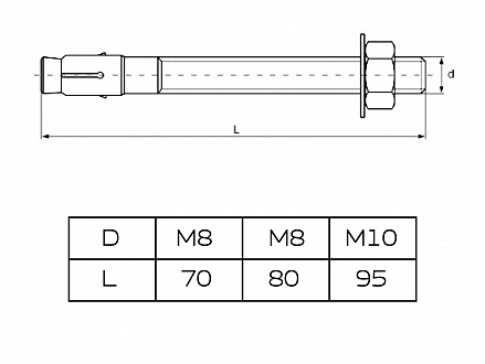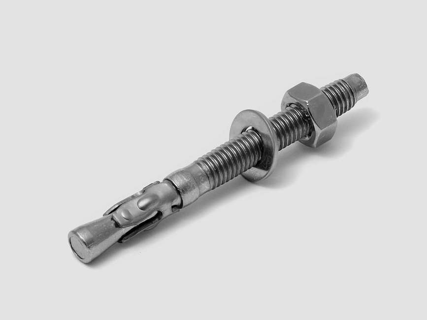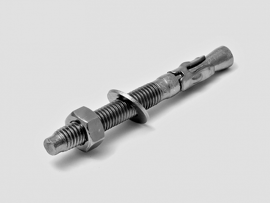 Применяется для установки конструкций большой массы в бетон, кирпич. Забивается молотком в заранее высверленное отверстие, после затягивается гайкой.