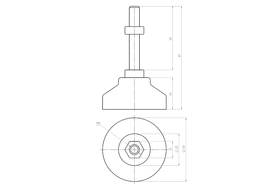 Опора регулируемая Ф50 М8х50, B689 Арт. B689
