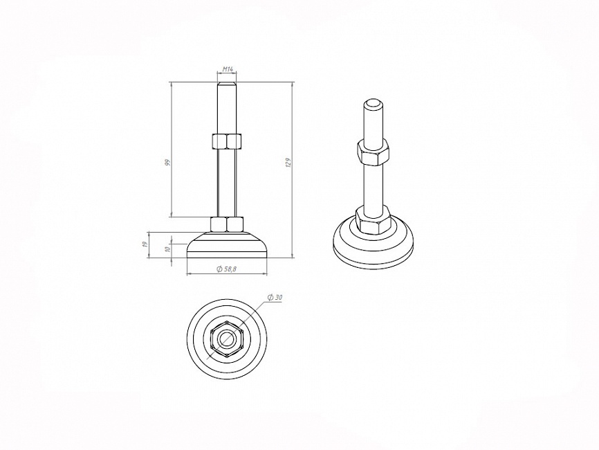Опора регулируемая Ф60 М14х130, A331 Арт. A331