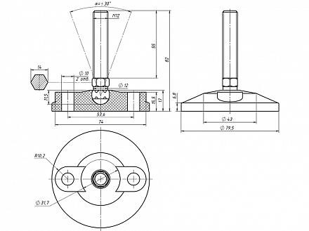 Опора регулируемая Ф80 М12х55, A15 Арт. A15