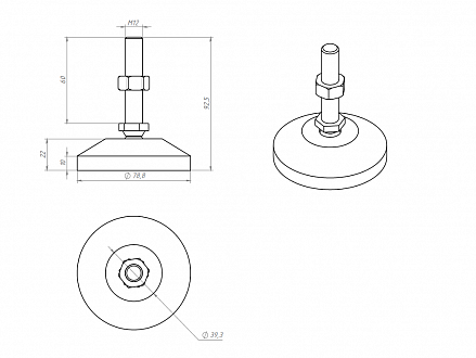 Опора регулируемая Ф80 М12х90, T09 Арт. T09