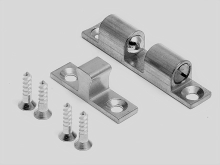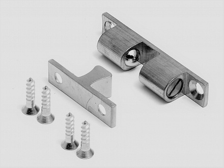 Защелка механическая шариковая предназначена для фиксации открывающихся створок дверей, лючков в модульной системе алюминиевых конструкционных станочных профилей.