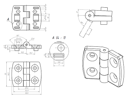 Используются для навески дверей, лючков в модульной системе алюминиевых конструкционных станочных профилей.