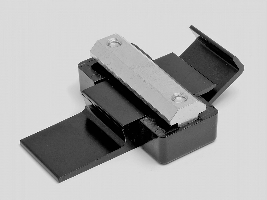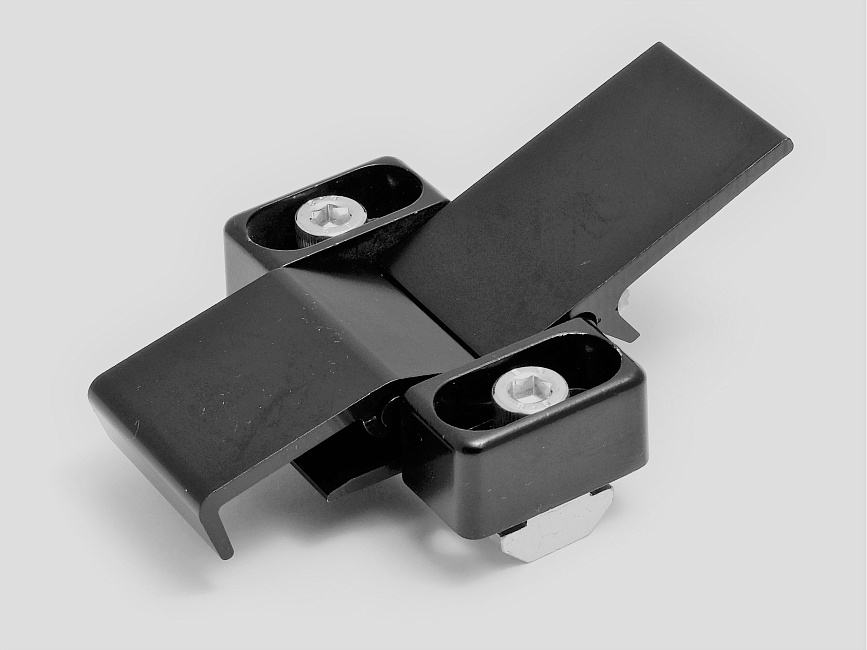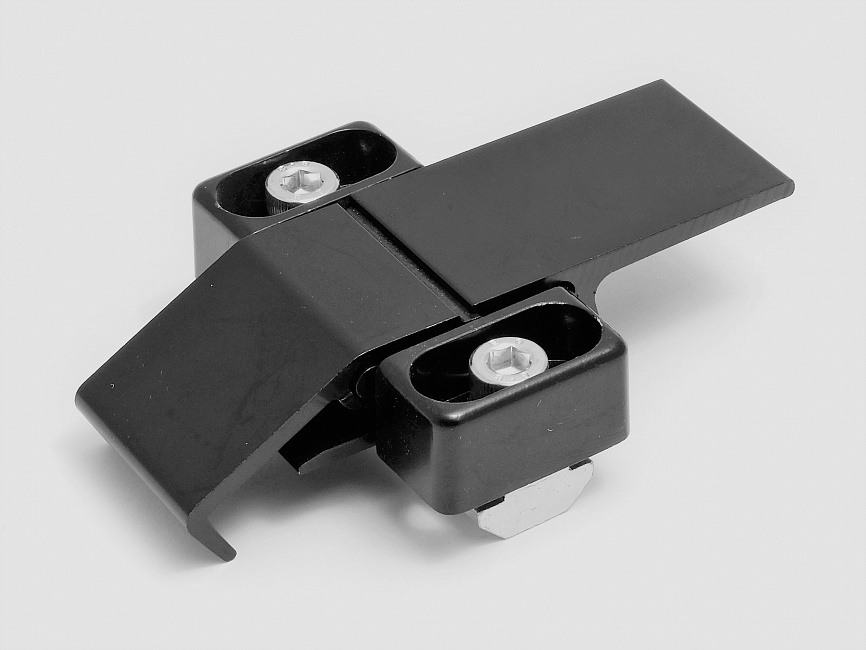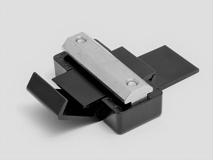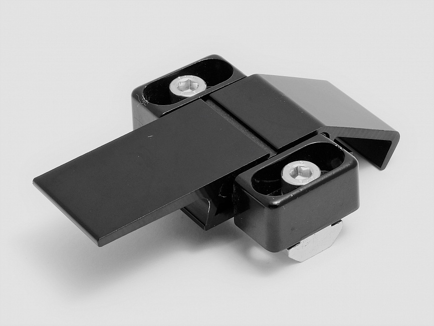 Защелка механическая предназначена для фиксации открывающихся створок дверей, лючков в модульной системе алюминиевых конструкционных станочных профилей.