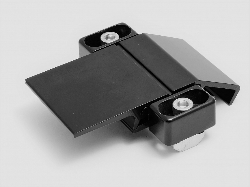 Защелка механическая предназначена для фиксации открывающихся створок дверей, лючков в модульной системе алюминиевых конструкционных станочных профилей.