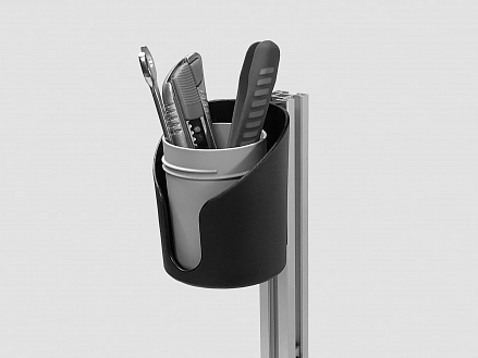 Подстаканник - это практичный аксессуар, выполненный из высокопрочного пластика, который обеспечивает долговечность использования. Он предназначен для крепления к конструкционному профилю, что позволяет максимально эффективно использовать пространство и организовать рабочее место.