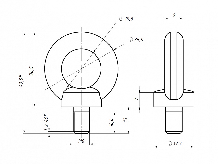 Рым-болт М8 применяется при создании точек крепления для крюков, канатов, цепей при организации подъема и перемещения предметов. Также может использоваться в качестве точки крепления для создания такелажных устройств, страховочных конструкций.