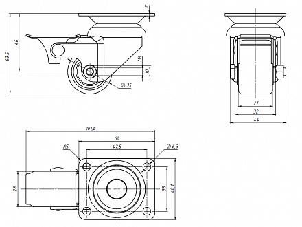 Колесо с тормозом Ø35 с платформой, A502 Арт. A502