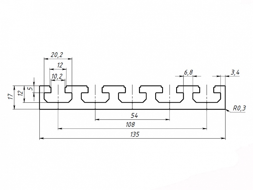 Профиль для стола тяжёлый 17х135 (Без покрытия) Арт. TH1X