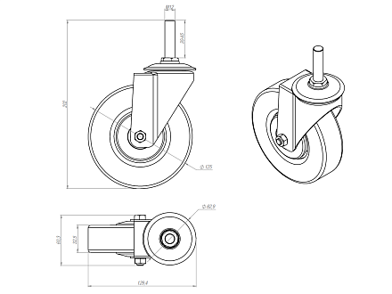 Колесо без тормоза Ø125 М12х45, A322 Арт. A322