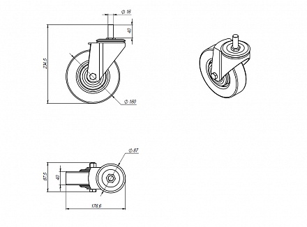 Колесо без тормоза Ø160 М16х40, A327 Арт. A327