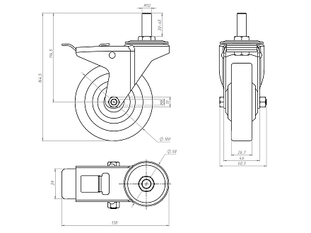 Колесо с тормозом Ø100 М12х45, A320 Арт. A320