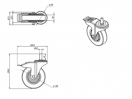 Колесо с тормозом Ø160 М16х40, A328 Арт. A328