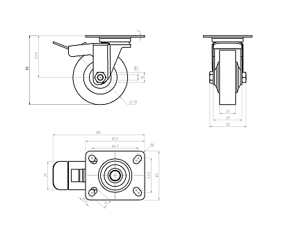 Колесо с тормозом Ø75 с платформой, H50 Арт. H50