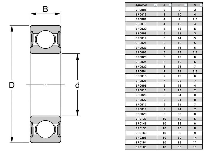 Подшипник 180028 АС17 FBC ( 628 2RS ) 8х24х8, BR0026 Арт. BR0026