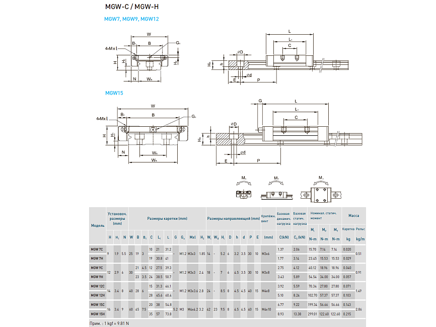 Рельсовая каретка MGW 7H, B561 Арт. B561
