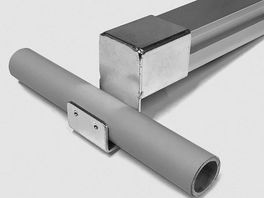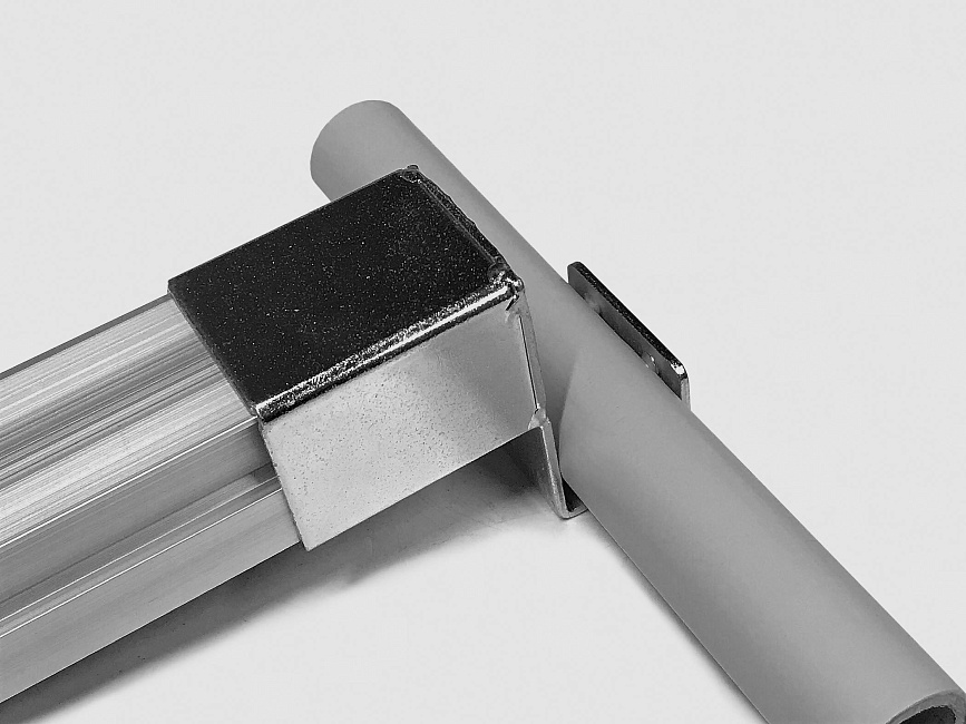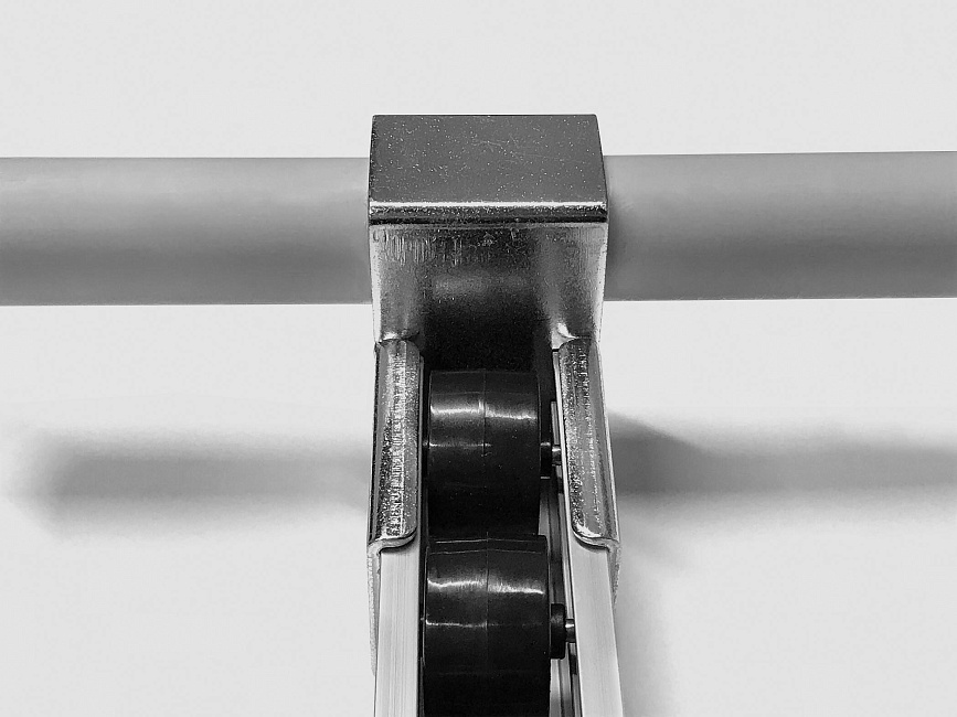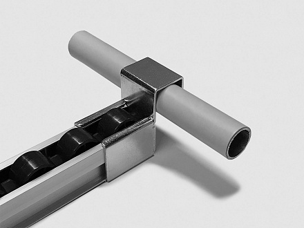 Кронштейн для алюминиевой направляющей тип C используется совместно в модульной трубной системе для установки роликовой направляющей на алюминиевую трубу D28 мм.