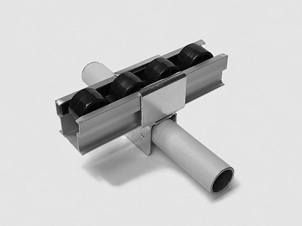 Кронштейн для алюминиевой направляющей тип D используется совместно в модульной трубной системе для установки роликовой направляющей на алюминиевую трубу D28 мм.