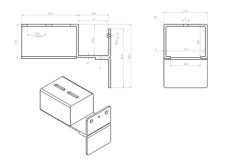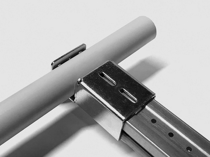 Кронштейн для стальной направляющей тип B  используется для установки на направляющую и соединением с трубой Ф28 под произвольным углом.