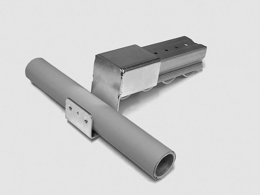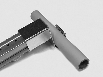 Кронштейн для стальной направляющей тип C используется для установки на направляющую и соединением с трубой Ф28 под произвольным углом.