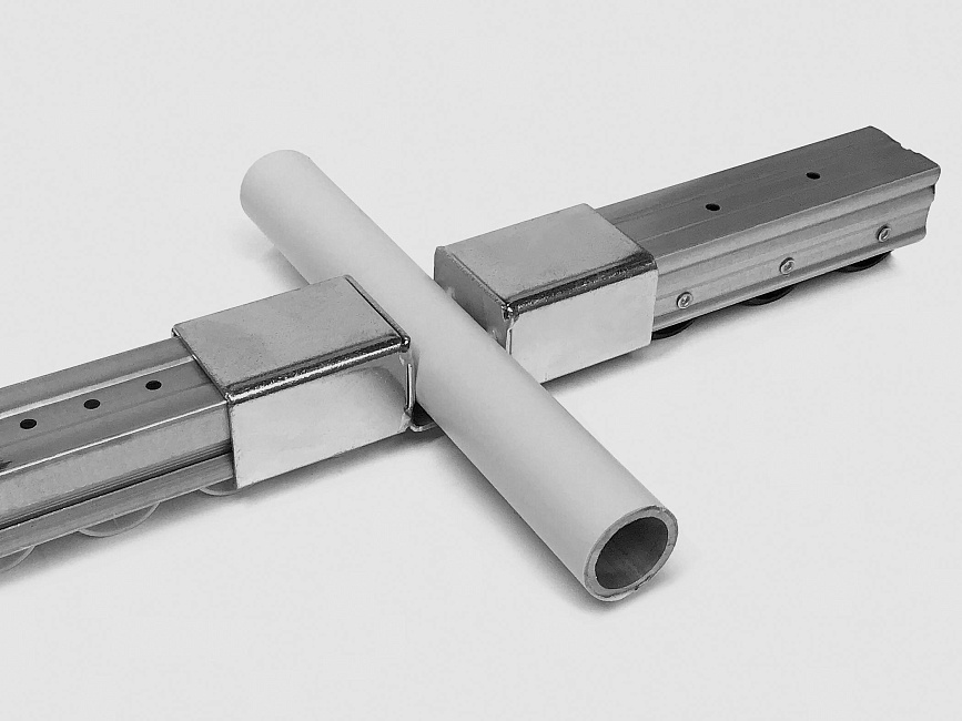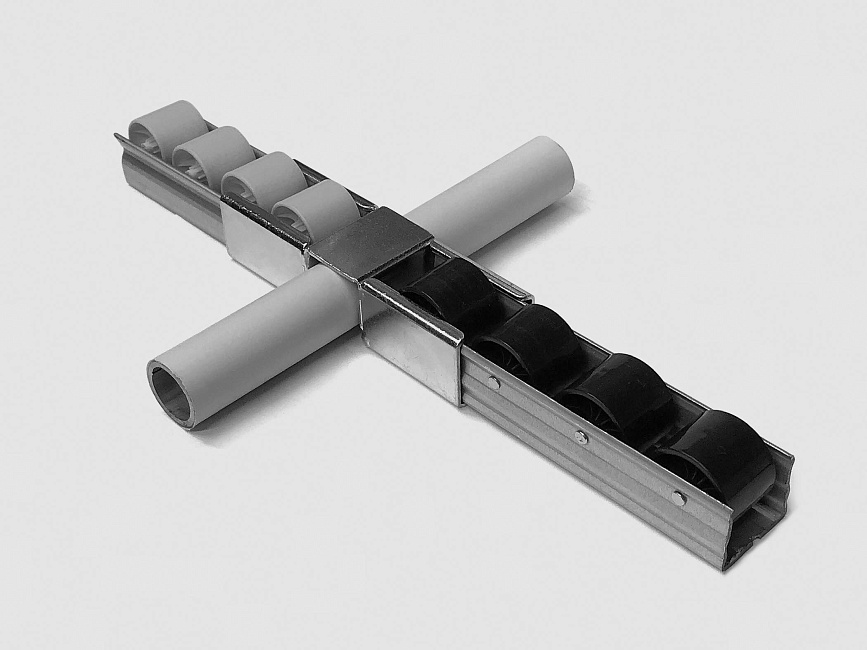 Кронштейн для стальной направляющей тип E используется для установки на направляющую и соединением с трубой Ф28 под произвольным углом.