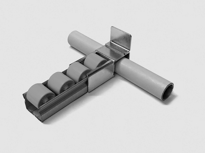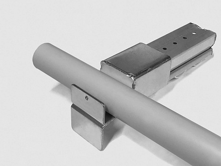 Кронштейн для стальной направляющей тип J используется для установки на направляющую и соединением с трубой Ф28 под произвольным углом.