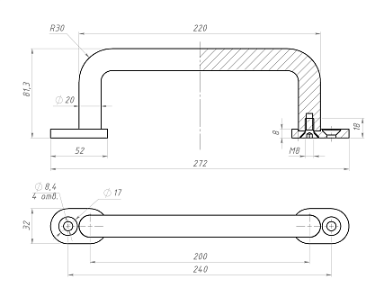 Ручка скоба (дуга) для входных и межкомнатных дверей произведена из алюминиевой трубы. Ручка-скоба подходит для большинства дверей, включая алюминиевые и металлические офисные двери.