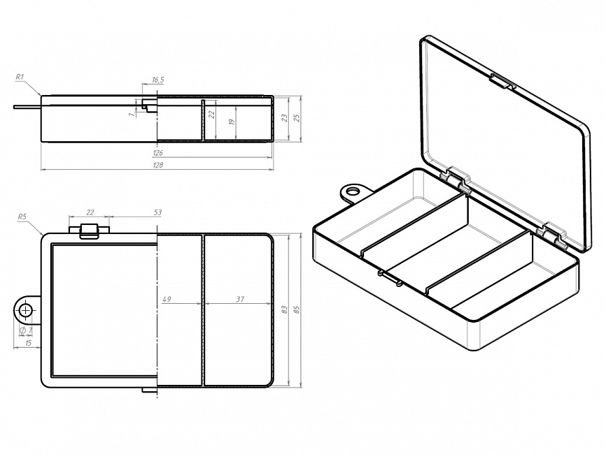 Контейнер пластиковый с крышкой с разделителями 125x85x25, B214 Арт. B214