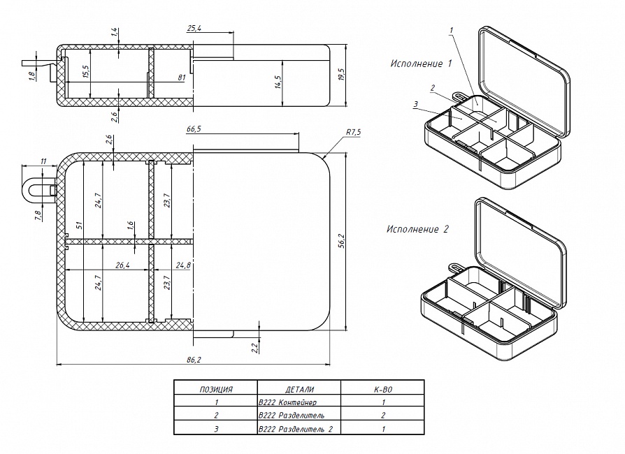 Контейнер пластиковый с крышкой с разделителями 80x55x20, B222 Арт. B222