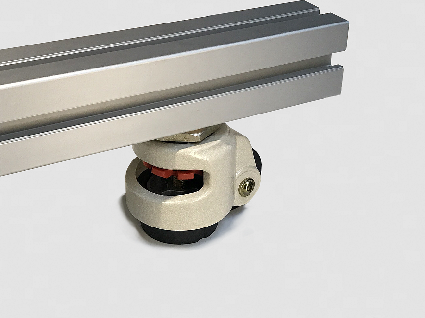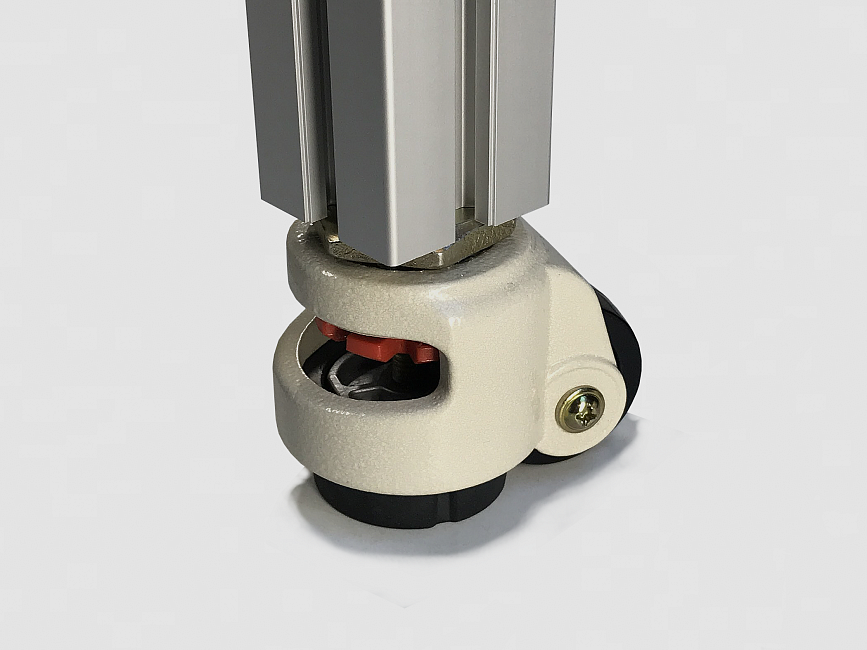 Колесо самоустанавливающееся с диаметром колеса 52 мм, рассчитанное под нагрузки до 250 кг. Главная конструктивная особенность - возможность самостоятельно менять высоту опоры для точной регулировки конструкции. Наличие накладки обеспечивает возможность регулировки при выравнивании, гарантируя безопасность позиционирования. Общая высота 80 мм + 10 мм.