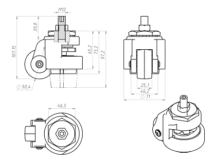 Самоустанавливающееся колесо с тормозом Ø52 M12x40, A696 Арт. A696