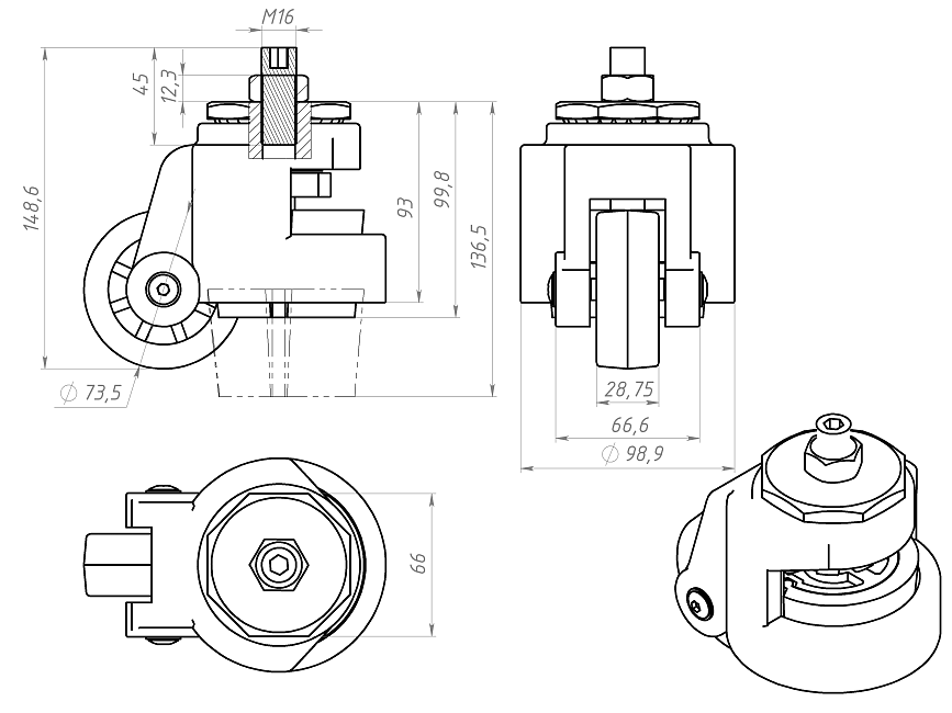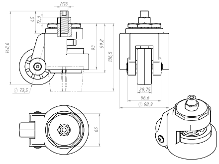 Самоустанавливающееся колесо с тормозом Ø73 M16x45, A698 Арт. A698