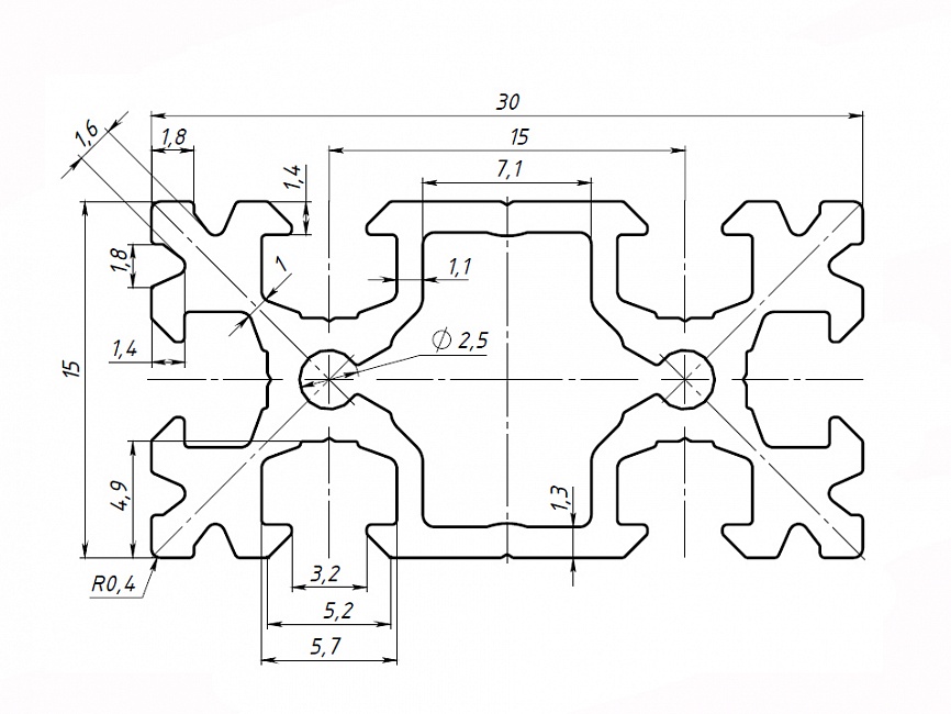 Алюминиевый профиль серии 15 с пазом 3 мм, применяется для создания макетов машин, лабораторных и выставочных стендов. Благодаря небольшим внешним размерам и большому набору соединительных пластин, из профиля можно сконструировать компактные приспособления и реализовать любую Вашу задумку. В паз профиля, становиться шестигранная гайка и головка шестигранного болта, благодаря этому снижается стоимость крепежа, а благодаря мощным центральным каналам, в них можно нарезать резьбу М3.