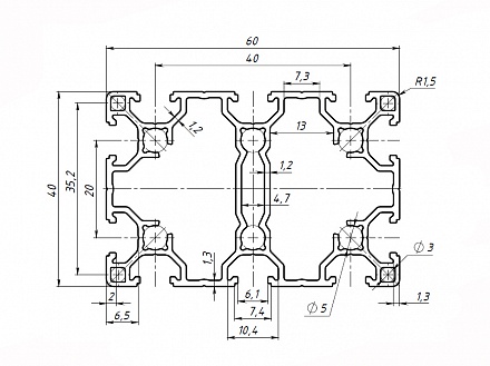 Профиль конструкционный 20.40х60L (Без покрытия) Арт. 246LX