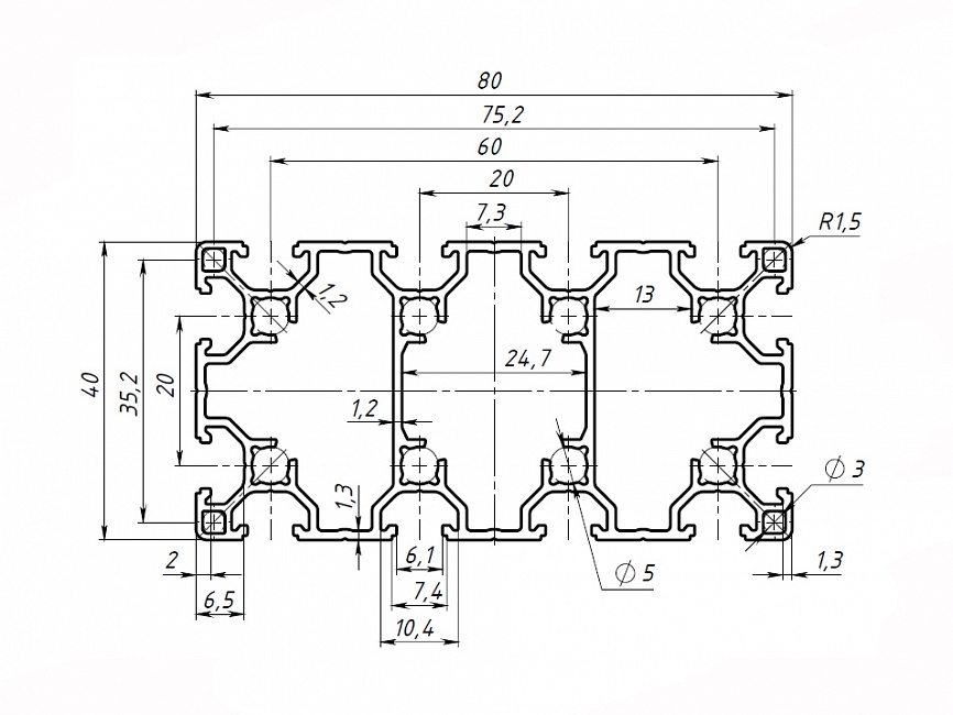 Профиль конструкционный 20.40х80L (Без покрытия) Арт. 248LX