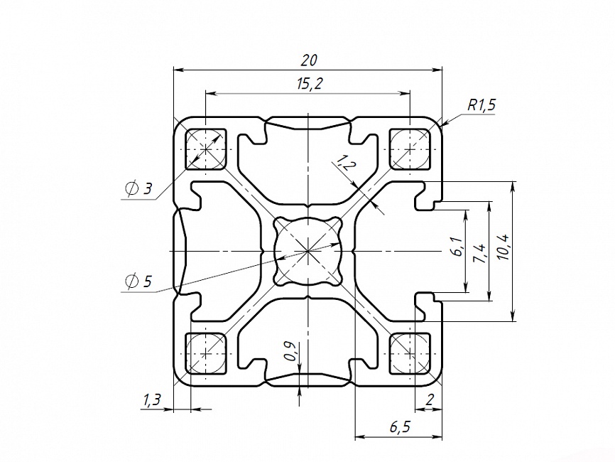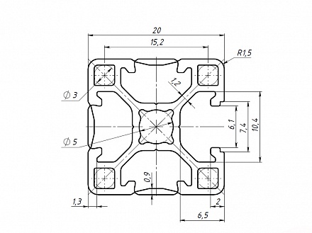 Профиль конструкционный 20х20L.3C (Без покрытия) Арт. 222L.3CX