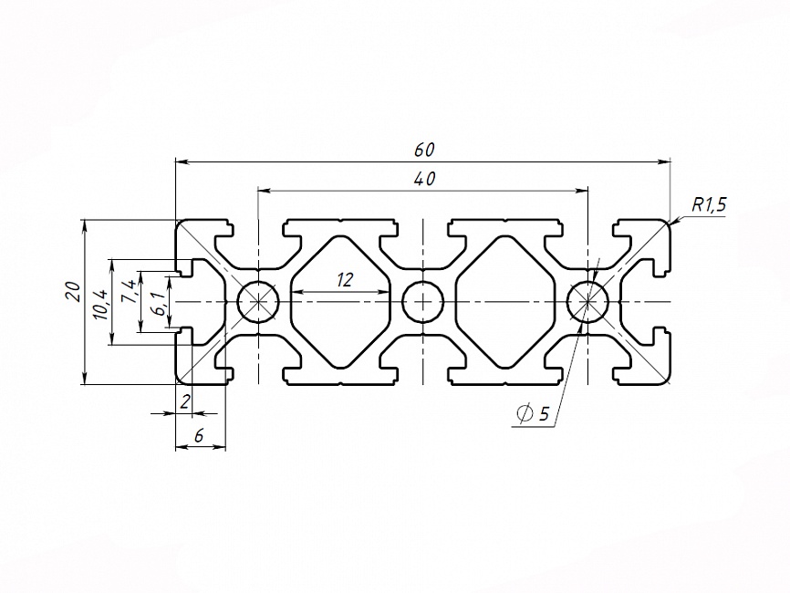 Алюминиевый профиль 20 серии с Т пазом 6 мм применяется для простых конструкций воспринимающих средние нагрузки. Также широко используется для создания выставочных стендов, легких дверей и перегородок, защитных ограждений, небольших лабораторных приборов и других конструкций. Профиль конструкционный 20х60SH отлично подойдет для домашних конструкций. Не рекомендуется использовать Т-гайки A128, A129, A130.