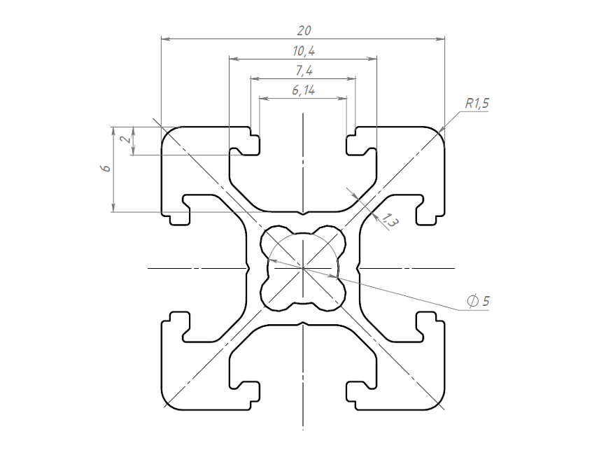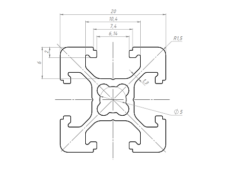Алюминиевый профиль 20 серии с пазом 6 мм применяется для простых конструкций воспринимающих средние нагрузки. Также широко используется для создания выставочных стендов, легких дверей и перегородок, защитных ограждений, небольших лабораторных приборов и других конструкций. Профиль конструкционный 20х20 отлично подойдет для домашних конструкций.