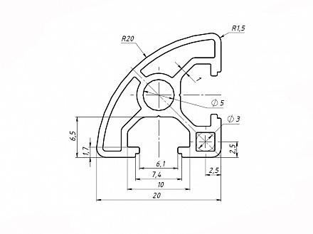 Профиль конструкционный 20х20R (Ан. серебро) Арт. 222R