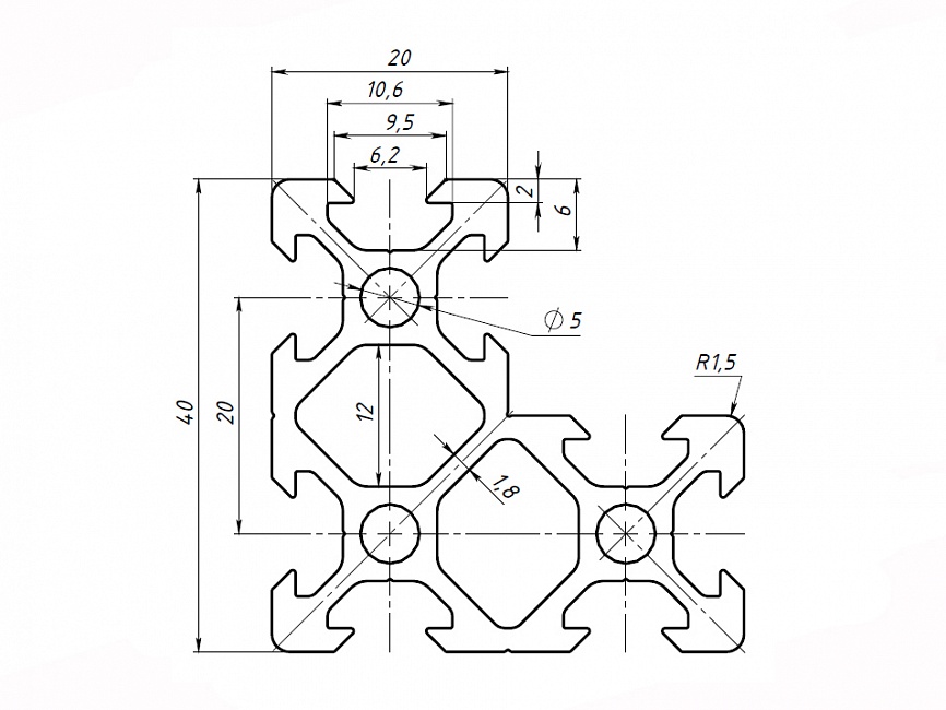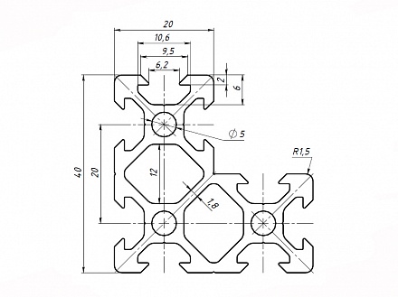 Алюминиевый профиль 20 серии с пазом 6 мм применяется для простых конструкций воспринимающих средние нагрузки, а благодаря наличию V-slot паза, он отлично подходит для создания каркаса 3D принтера. Также широко используется для создания выставочных стендов, легких дверей и перегородок, защитных ограждений, небольших лабораторных приборов и других конструкций. Профиль конструкционный 20.40х40.22 может также использоваться для изготовления стеллажей и полок.