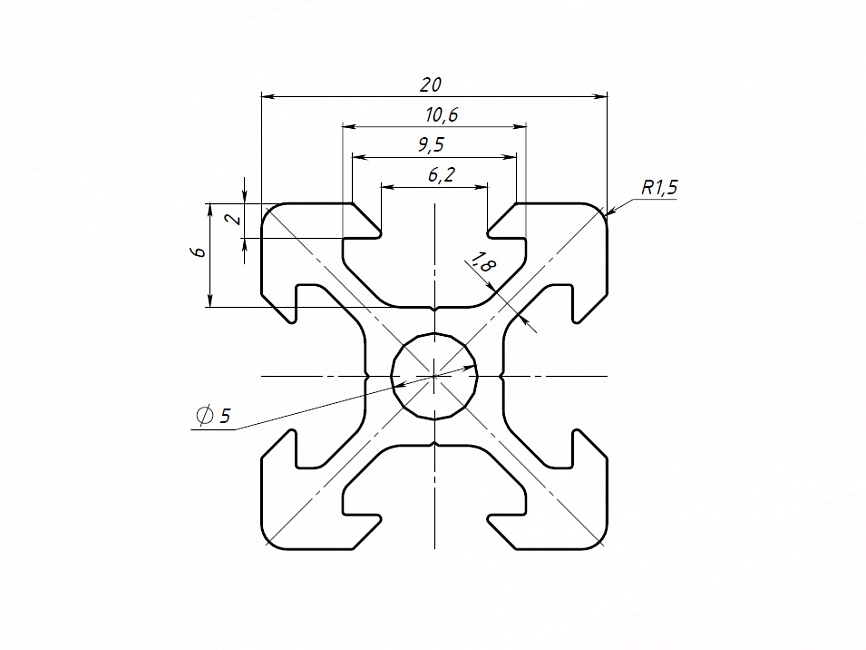 Алюминиевый профиль 20 серии с пазом 6 мм применяется для простых конструкций воспринимающих средние нагрузки, а благодаря наличию V-slot паза, он отлично подходит для создания каркаса 3D принтера. Также широко используется для создания выставочных стендов, легких дверей и перегородок, защитных ограждений, небольших лабораторных приборов и других конструкций. Профиль конструкционный 20х20X отлично подойдет для домашних конструкций.