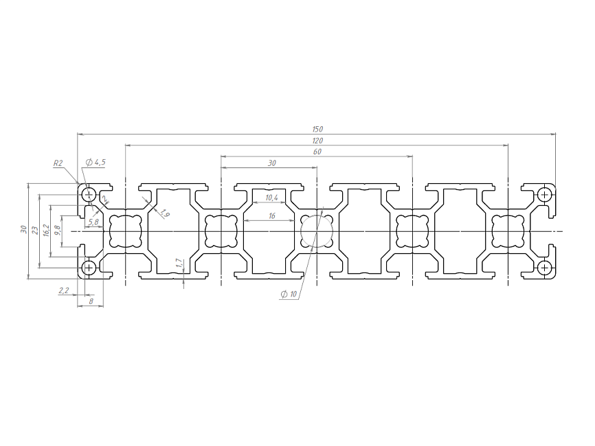 Алюминиевый профиль серии 30 с пазом 8 мм применяется для простых конструкций, воспринимающих средние нагрузки. Широко используется для создания выставочных стендов, легких дверей и перегородок, защитных ограждений, небольших лабораторных приборов и других конструкций.