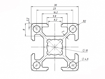 Алюминиевый профиль серии 30 с пазом 8 мм применяется для простых конструкций, воспринимающих средние нагрузки. Широко используется для создания выставочных стендов, легких дверей и перегородок, защитных ограждений, небольших лабораторных приборов и других конструкций. Профиль размером 30х30 может также использоваться для изготовления стеллажей и полок.