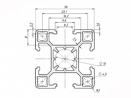 Алюминиевый профиль серии 30 с пазом 8 мм применяется для простых конструкций, воспринимающих средние нагрузки. Широко используется для создания выставочных стендов, легких дверей и перегородок, защитных ограждений, небольших лабораторных приборов и других конструкций. Профиль размером 30х30X может также использоваться для изготовления стеллажей и полок.