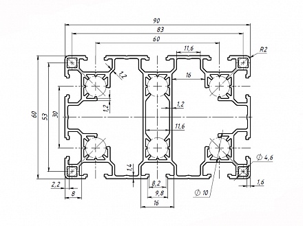 Профиль конструкционный 60x90L (Без покрытия) Арт. 369LX