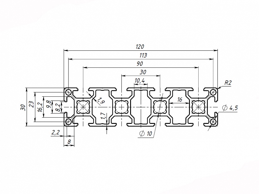 Алюминиевый профиль серии 30 с пазом 8 мм применяется для простых конструкций, воспринимающих средние нагрузки. Широко используется для создания выставочных стендов, легких дверей и перегородок, защитных ограждений, небольших лабораторных приборов и других конструкций.