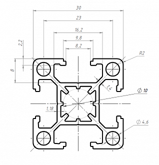 Алюминиевый профиль серии 30 с пазом 8 мм применяется для простых конструкций, воспринимающих средние нагрузки. Широко используется для создания выставочных стендов, легких дверей и перегородок, защитных ограждений, небольших лабораторных приборов и других конструкций. Профиль размером 30х30 может также использоваться для изготовления стеллажей и полок.
