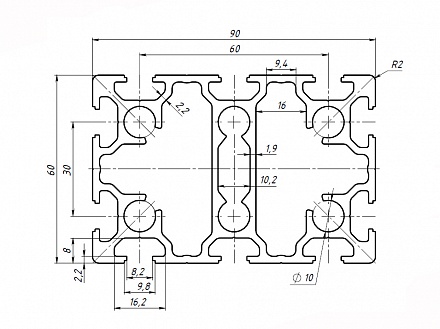 Профиль конструкционный 60х90 (Ан. серебро) Арт. 369